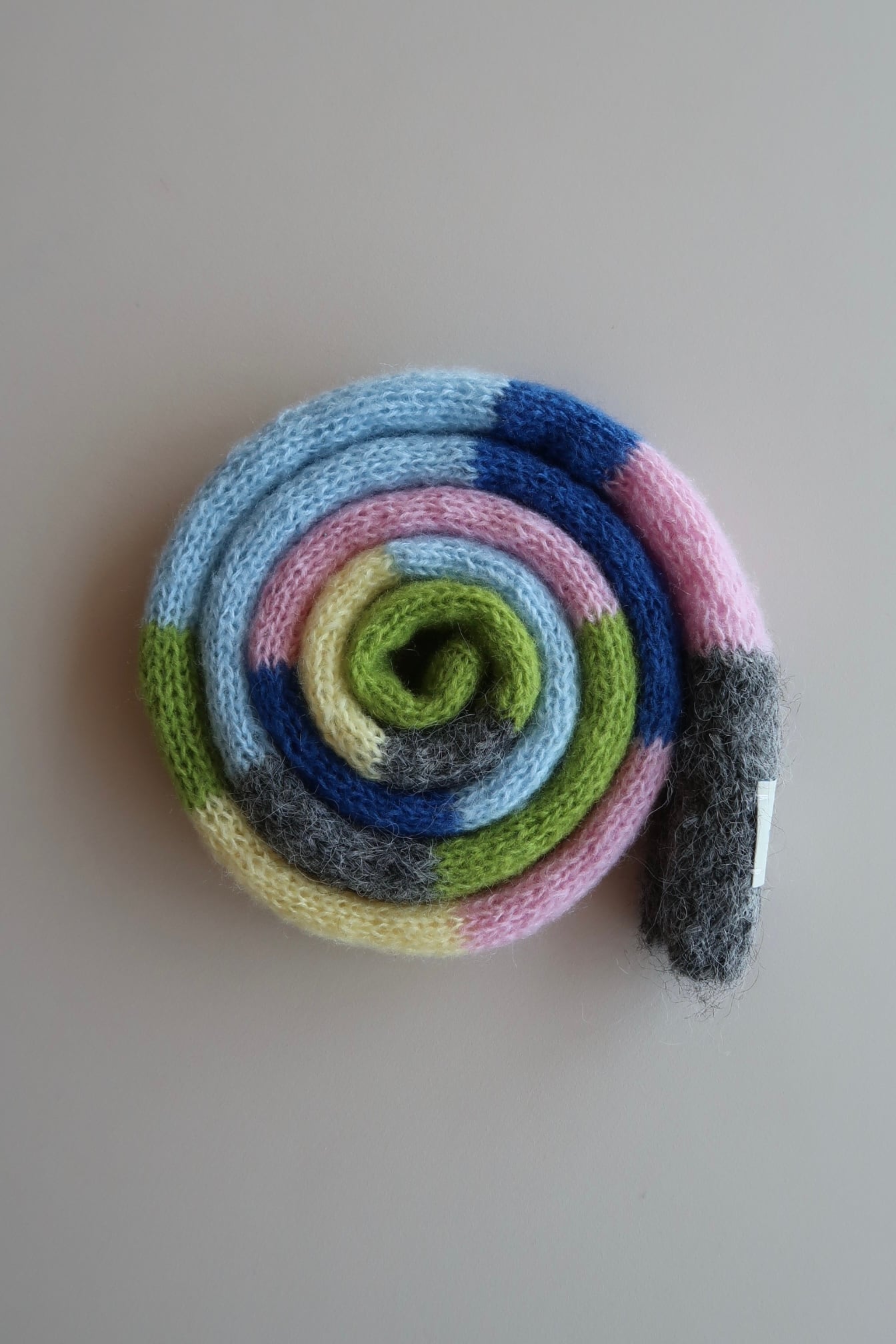複数の糸を組み合わせながら一つ一つ手編みで制作しているため、すべて一点ものとなります。