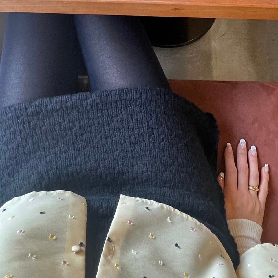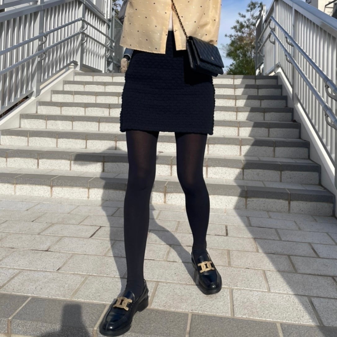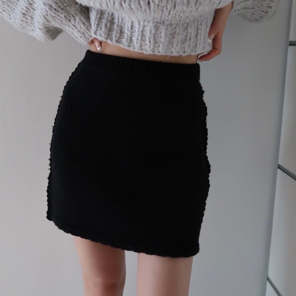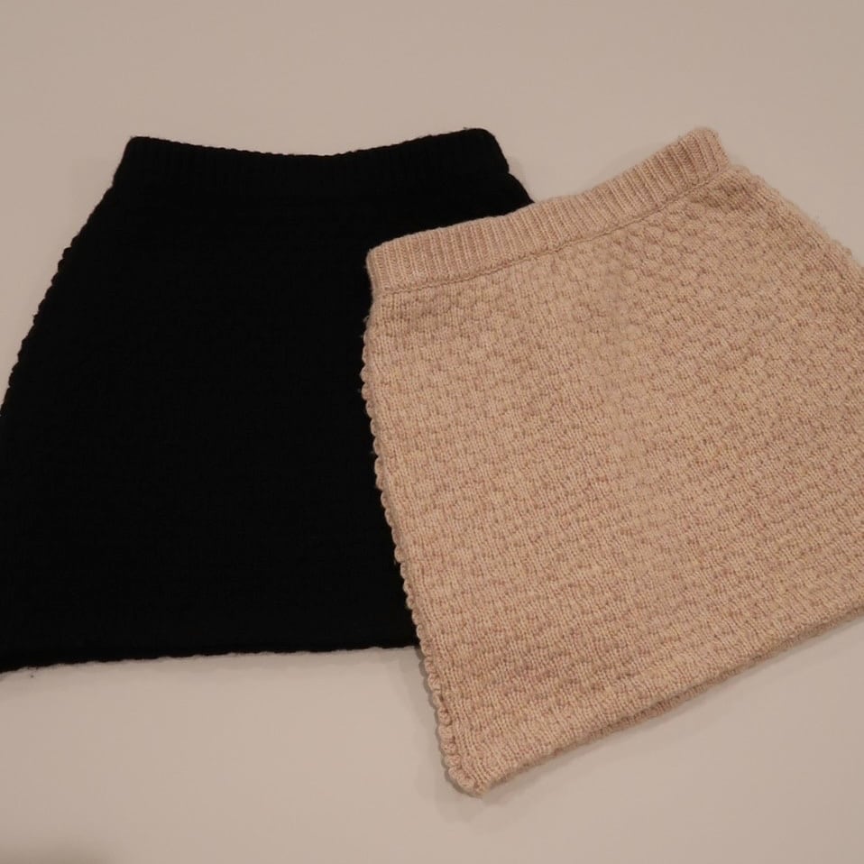 ニットのミニスカートはヒップラインを拾うことが懸念点だと感じていたので、修正を繰り返してニット特有の伸縮性を考慮し、着用時パーフェクトなシルエットが完成しました!