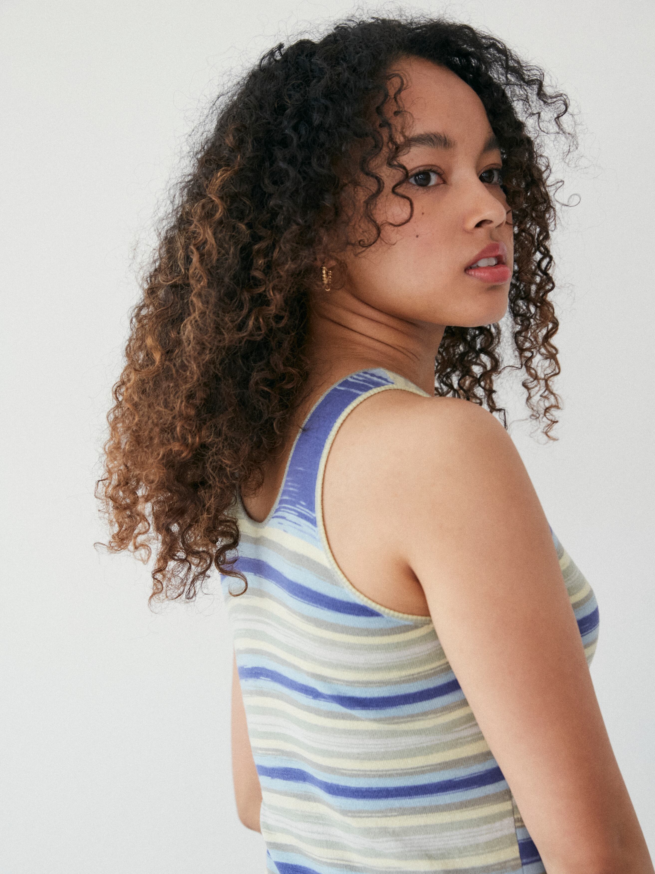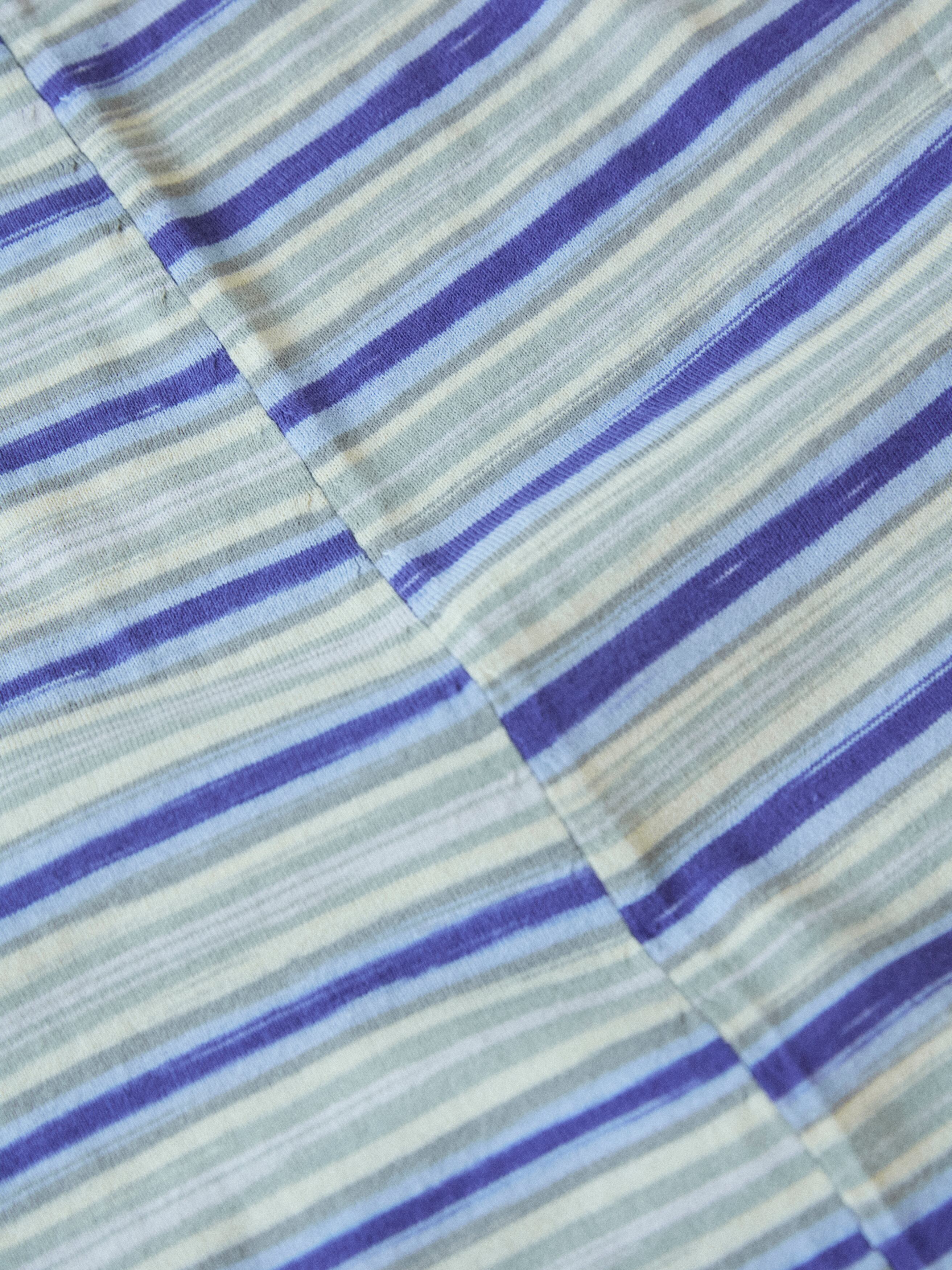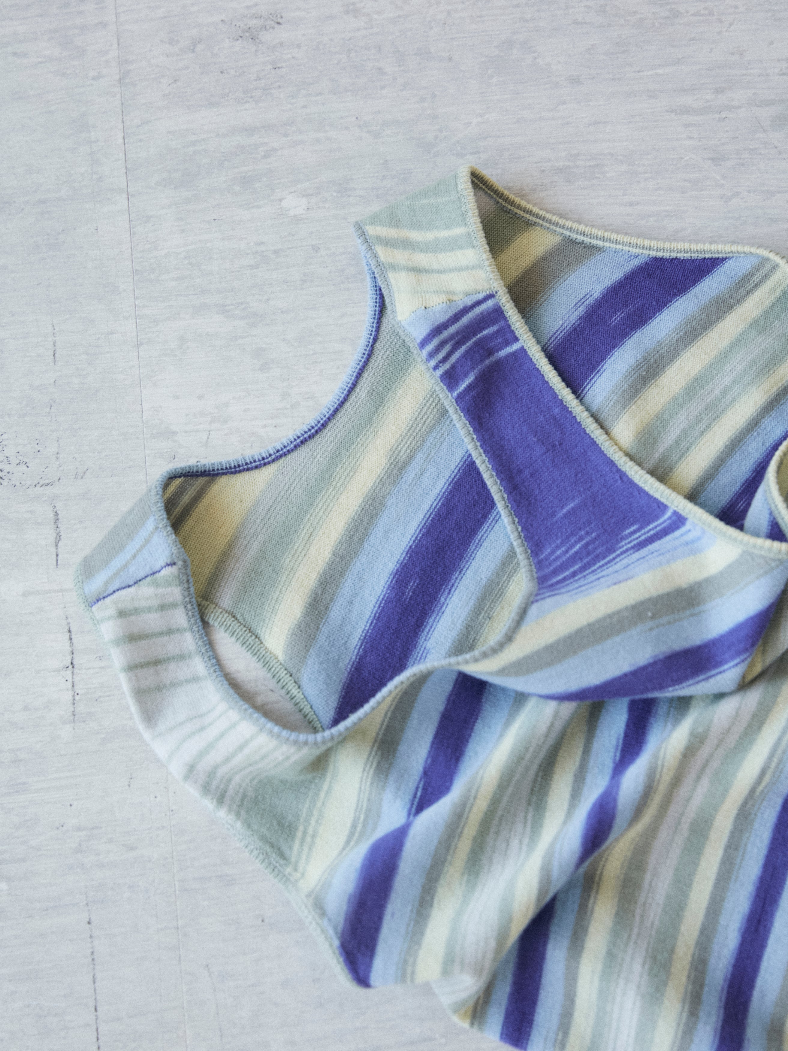 1本の糸の中で色々な色に染めているため、編んだ際に色々な表情が現れ、前後でボーダーが均一ではなく、肩周りのカラーも異なります!