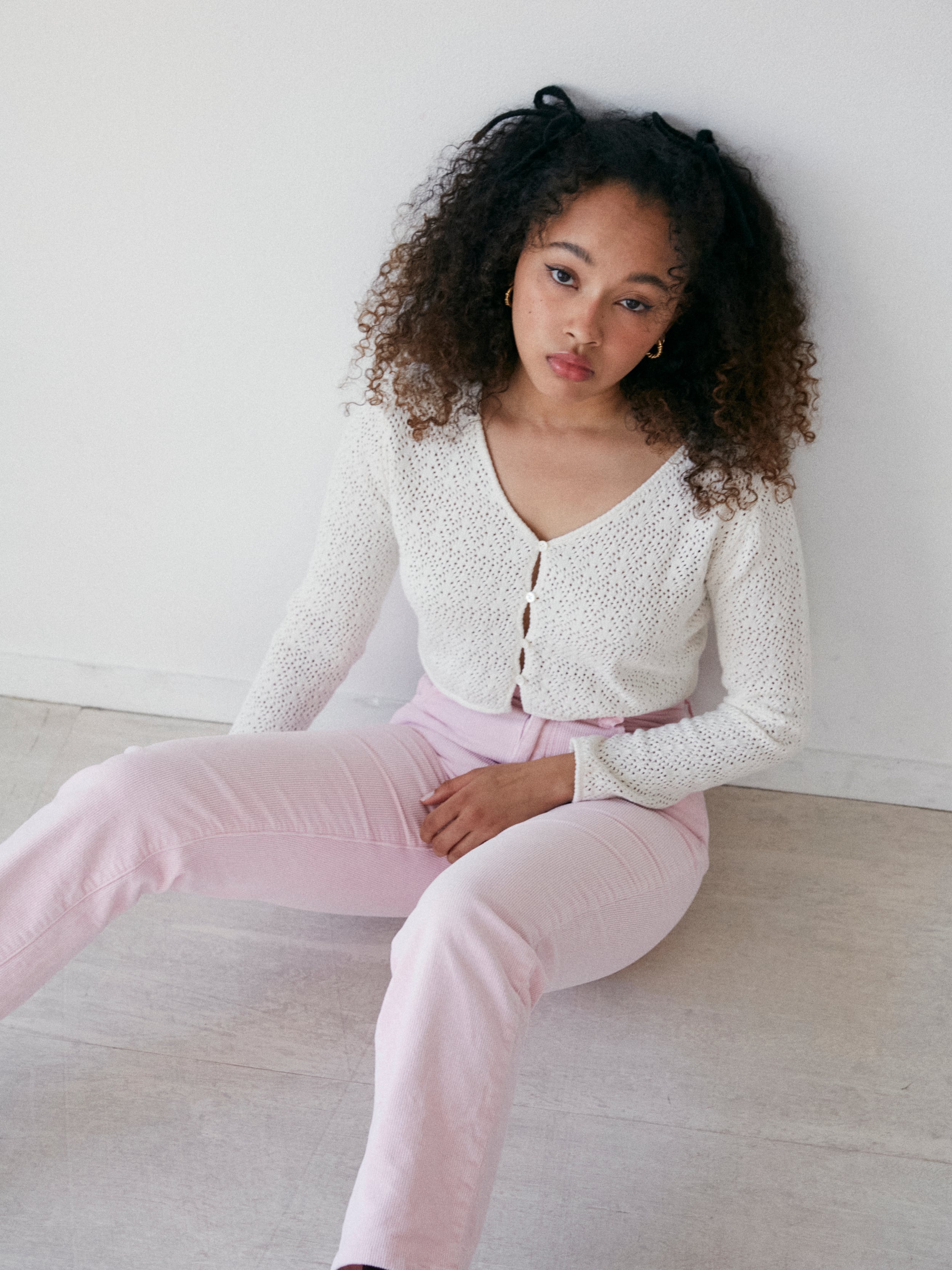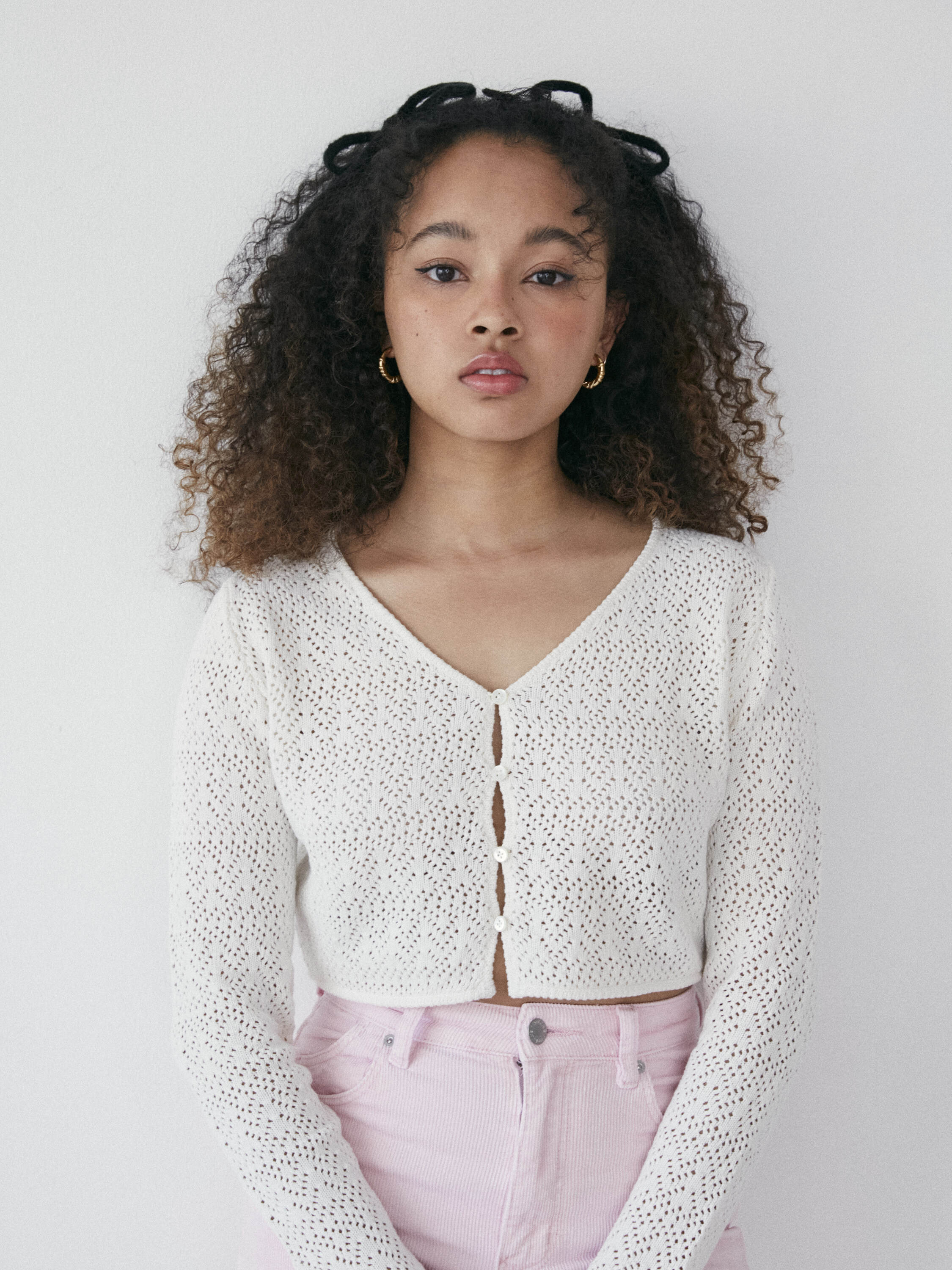 編み柄、サイズ感、どこかビンテージライクなカーディガン。定番アイテムだからこそ、愛着の湧く1枚を持っていたいです。