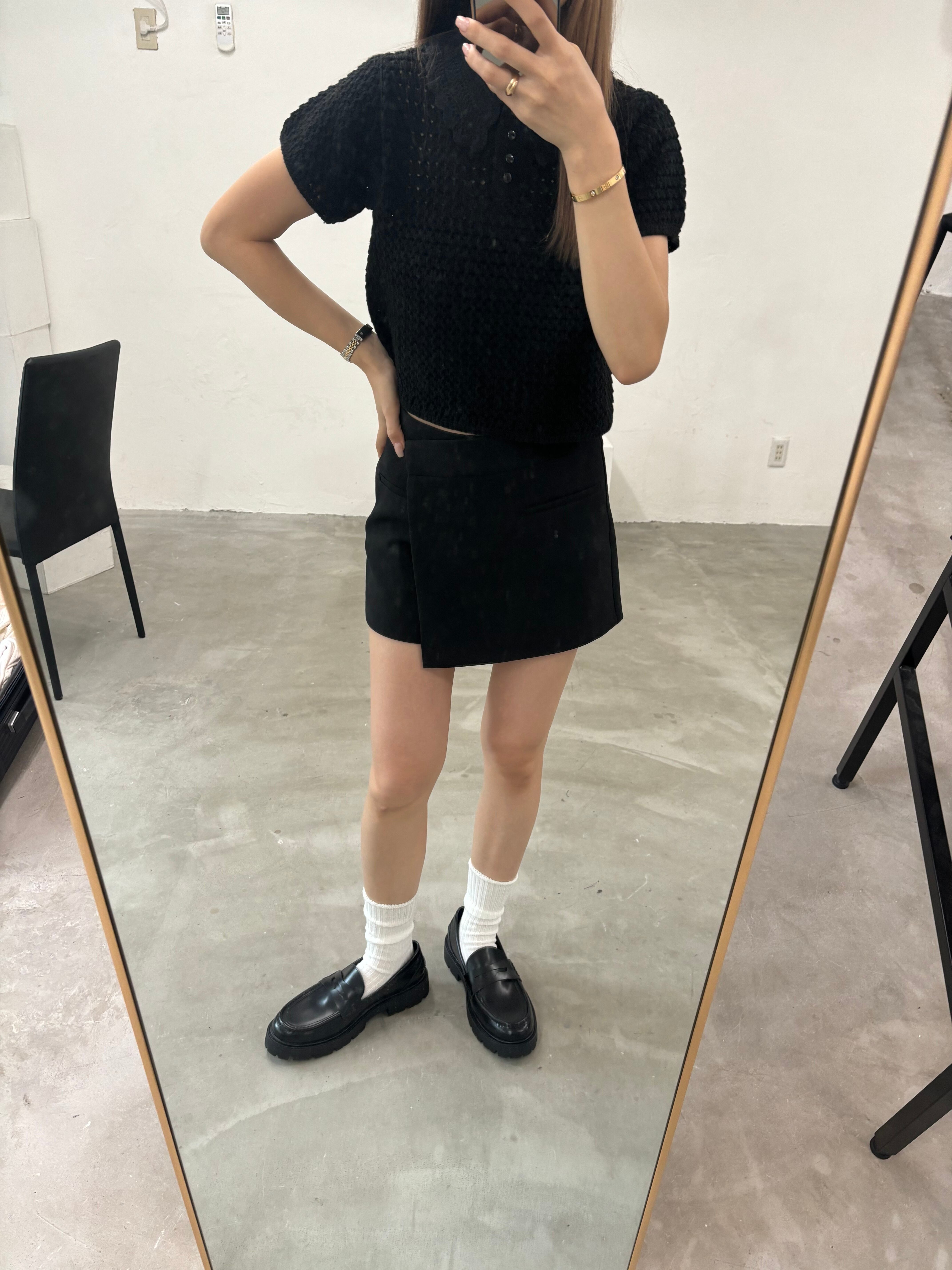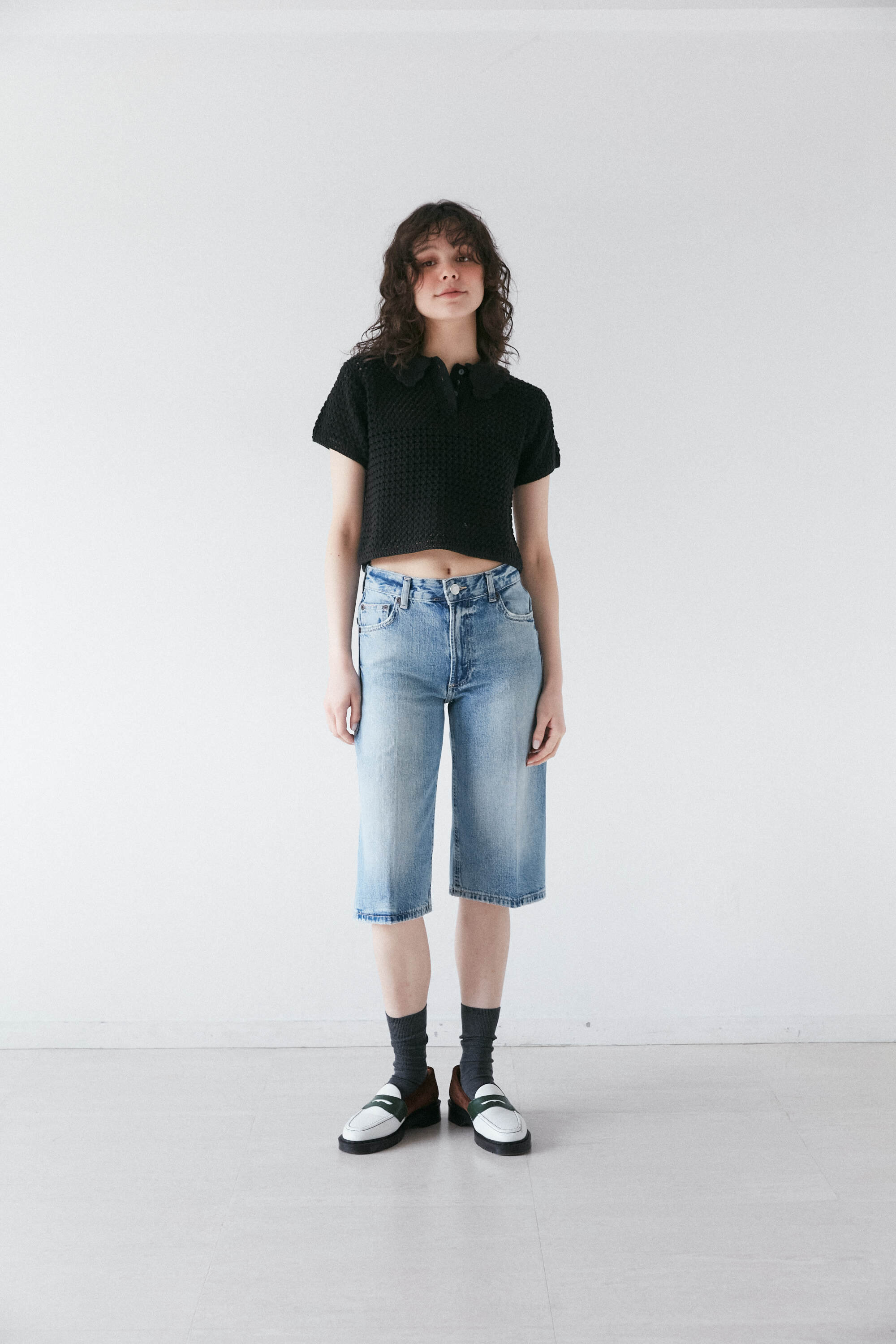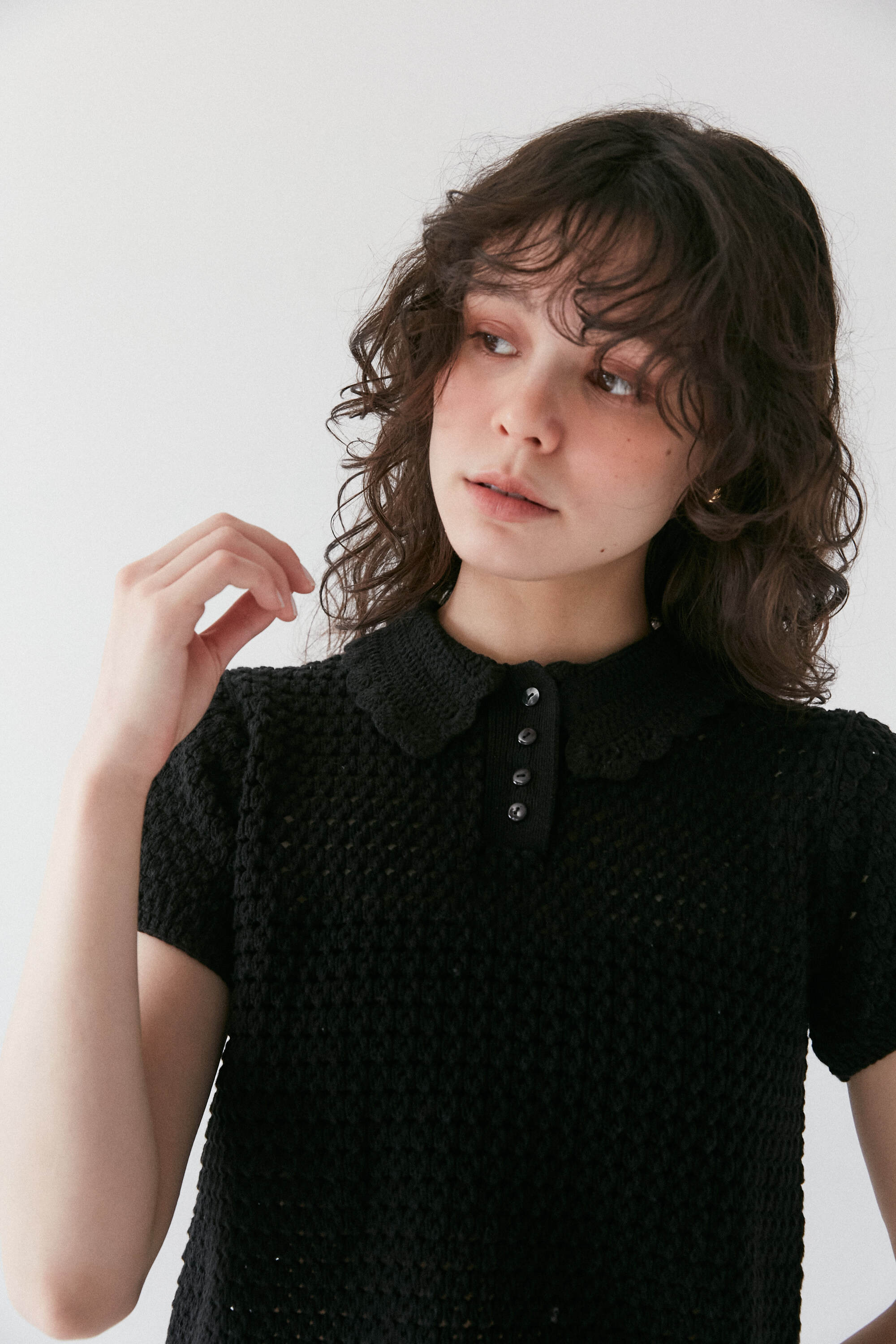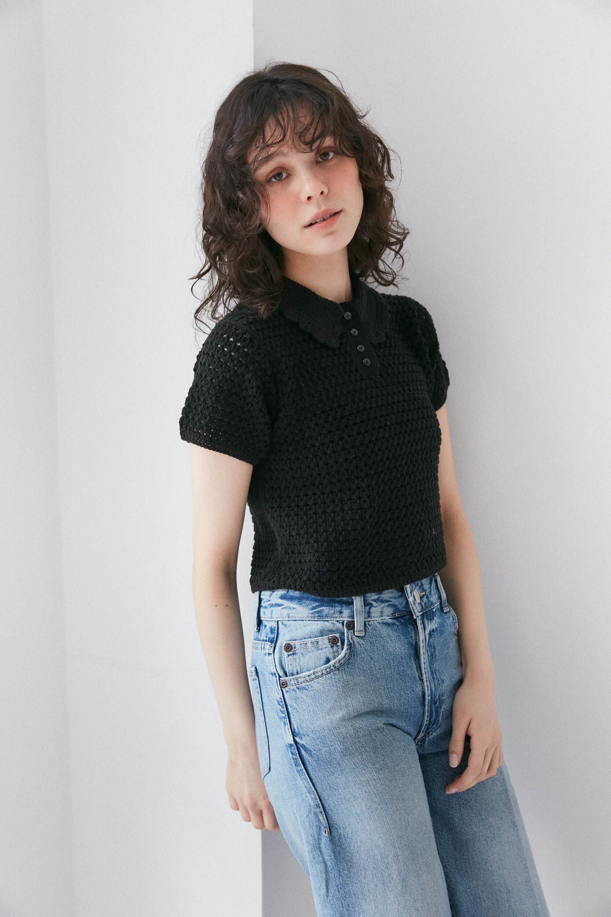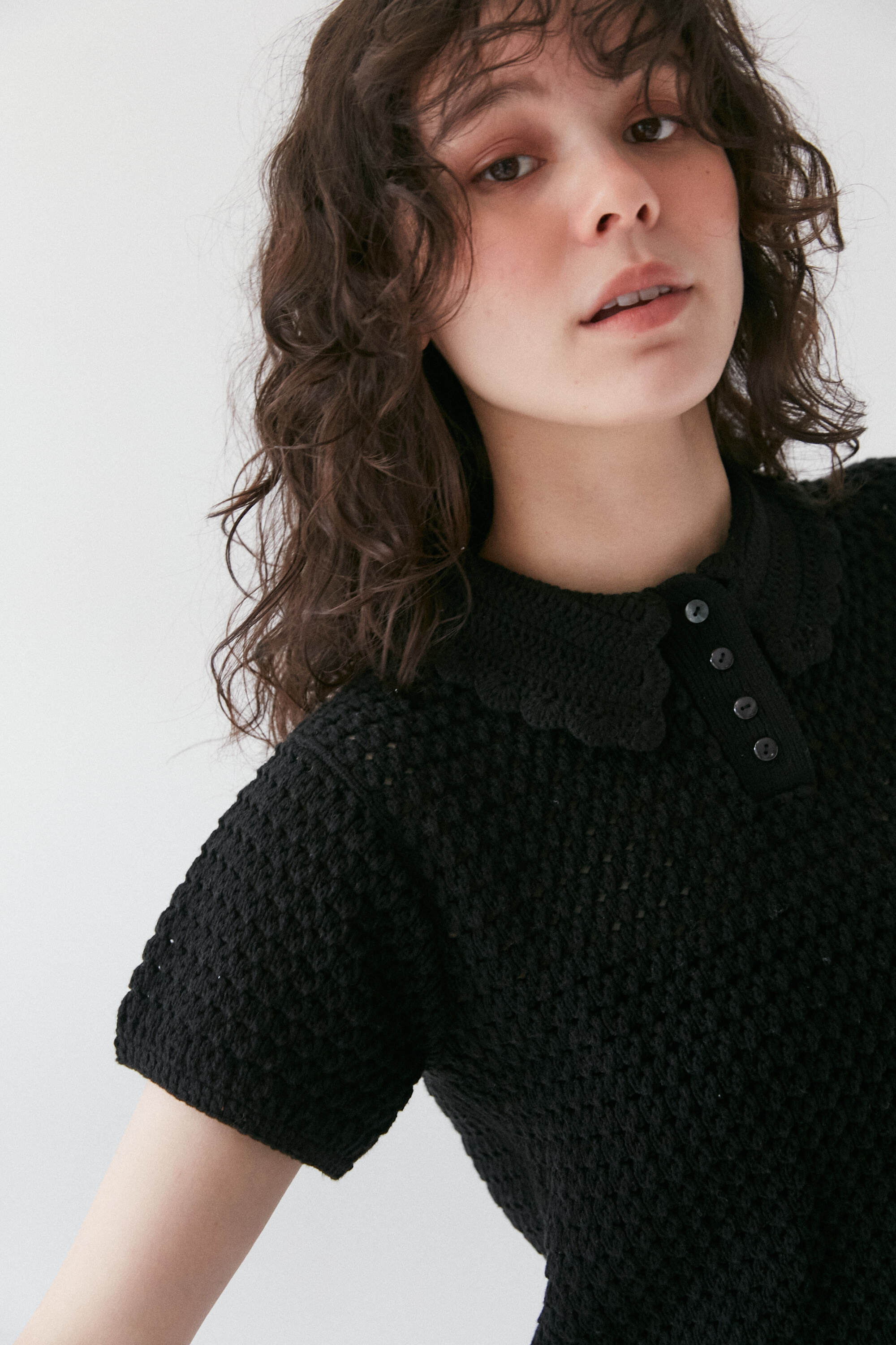 糸が収縮して膨らむため嵩高が増し、軽く柔らかな糸が混ざったcotton素材を使用しているため、ニットらしい表情感でありながらも透かし編みで通気性があります。