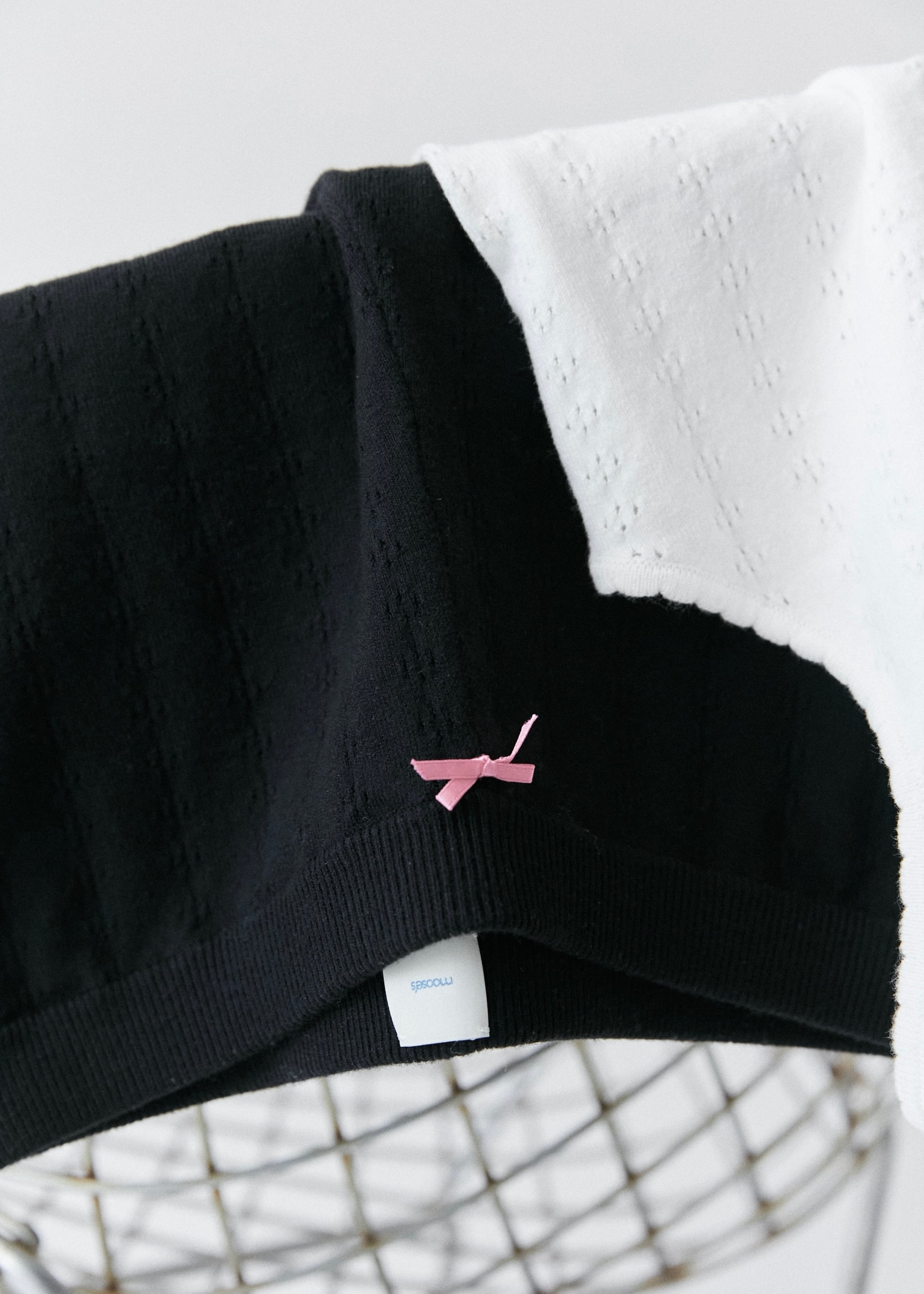 moose’s らしさが出るよう、eyelet (小さな穴)柄を施し、裾の始末のデザインまでこだわって仕上げました。
