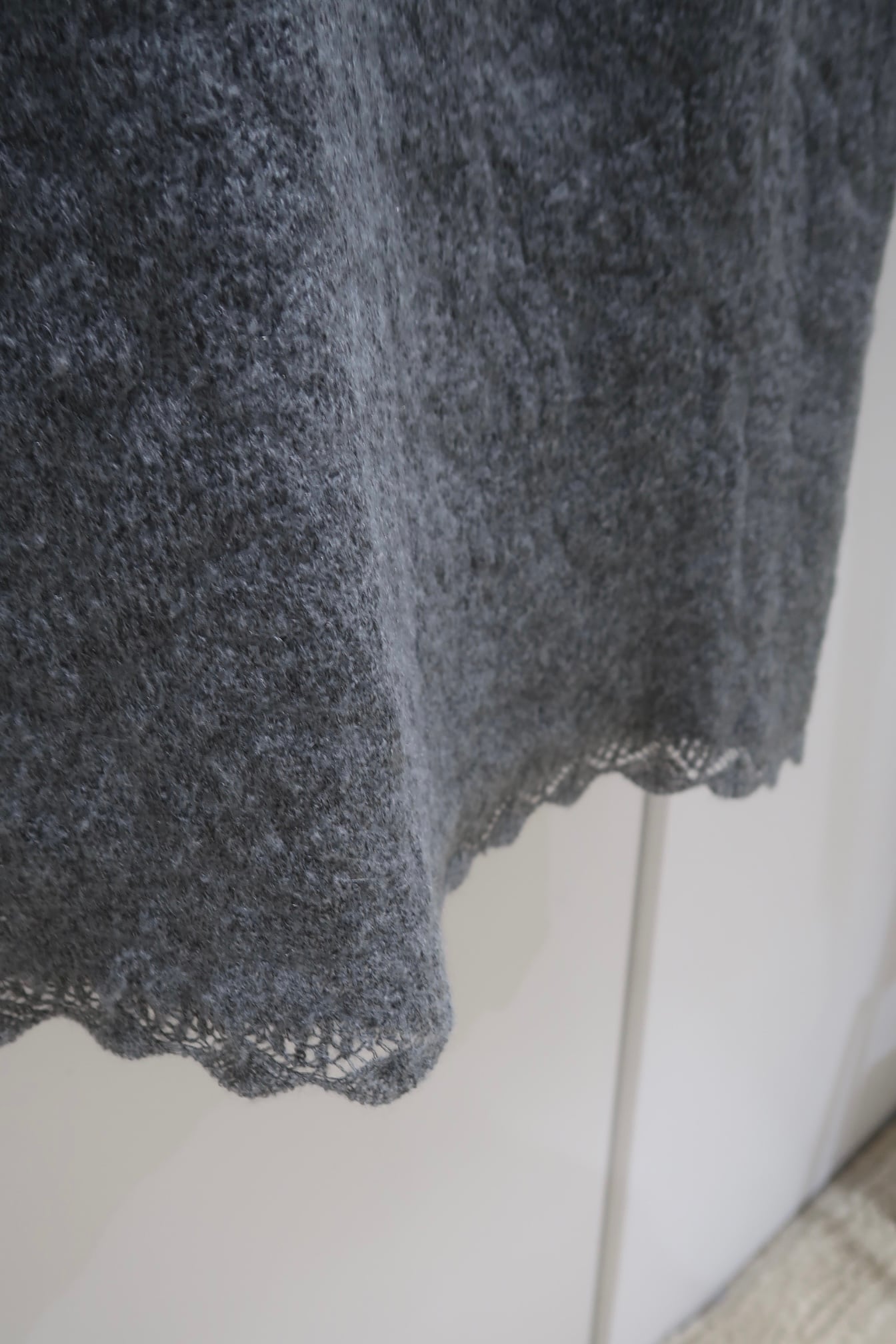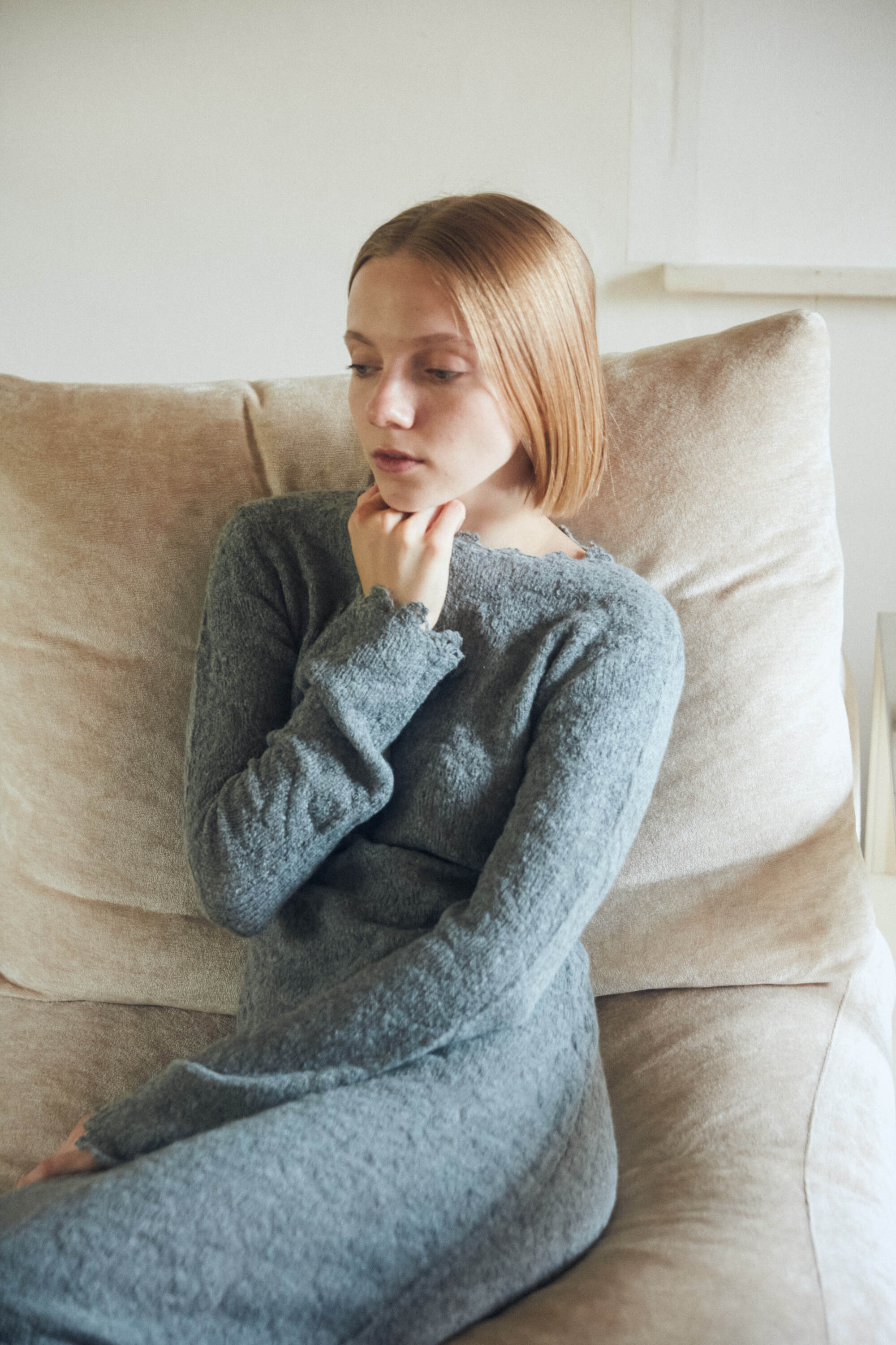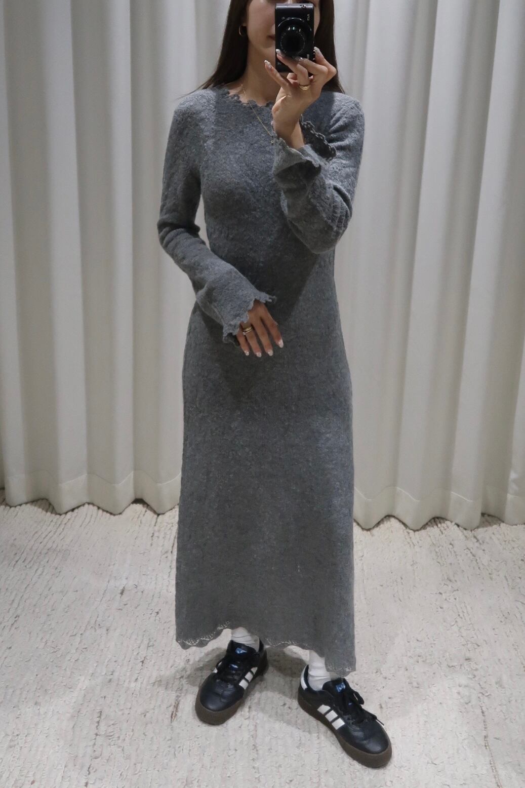 モヘヤ混でふわふわと柔らかく、フルレングスでもエアリーな着心地の良い素材です。