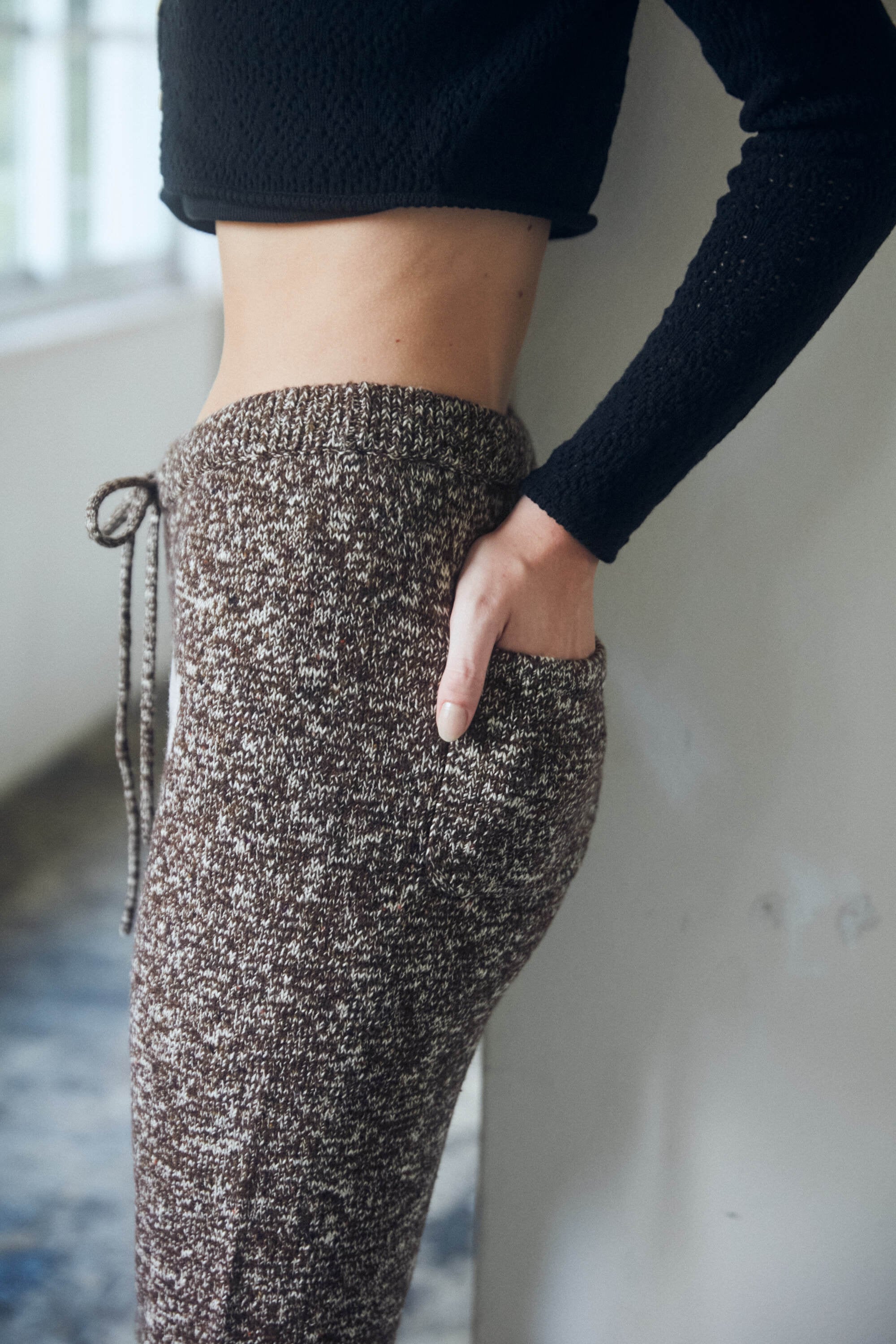 通気性や保温性に優れたコットンウールのメランジ糸を使用。